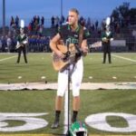 Country Music artist Jackson Dean sings the National Anthem at his high school football game in 2018.
